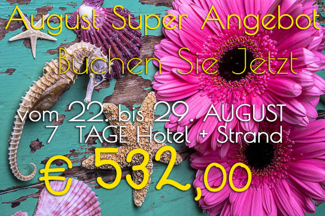 Die Aktion „Früh buchen, weniger bezahlen“ gilt für Buchungen, die bis zum 31. März bestätigt werden, mit einer Anzahlung von 20 % (nicht erstattungsfähig).