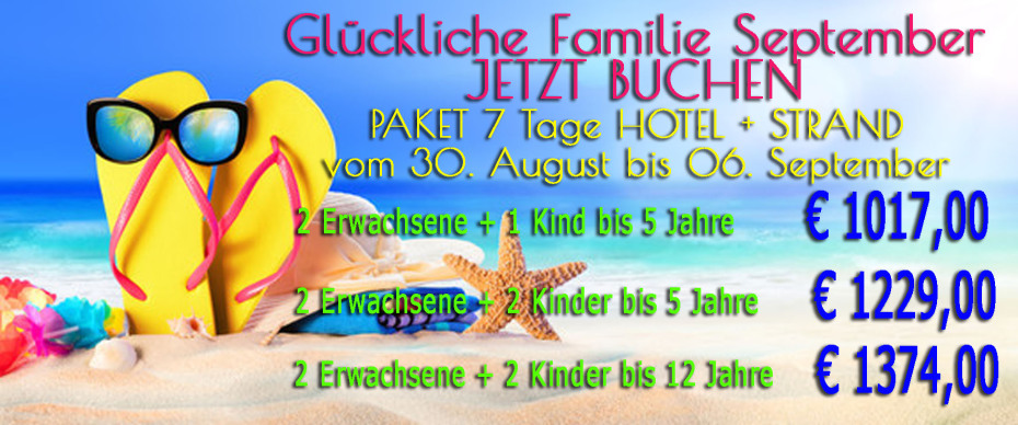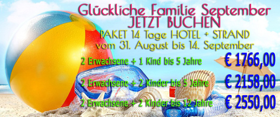 2 Erwachsene + 2 Kinder bis 5 Jahre € 1083,00