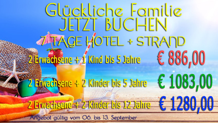 2 Erwachsene + 2 Kinder bis 12 Jahre € 1280,00