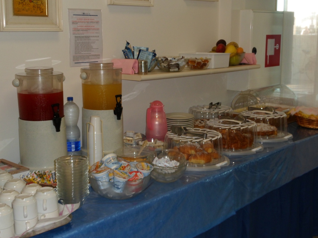 Sie werden in unserem reichhaltigen Frühstücksbüffet bestimmt etwas finden, was Sie mögen. Sie können zwischen etwas Süßem und Salzigem wählen, zwischen der klassischen Marmelade und den hausgemachten Kuchen oder dem gemischtem Aufschnitt und den hartgekochten Eiern, oder einem Becher Jogurt und Cornflakes, damit Sie auch im Urlaub Ihre Gewohnheiten bewahren können und sich wie zu Hause fühlen.