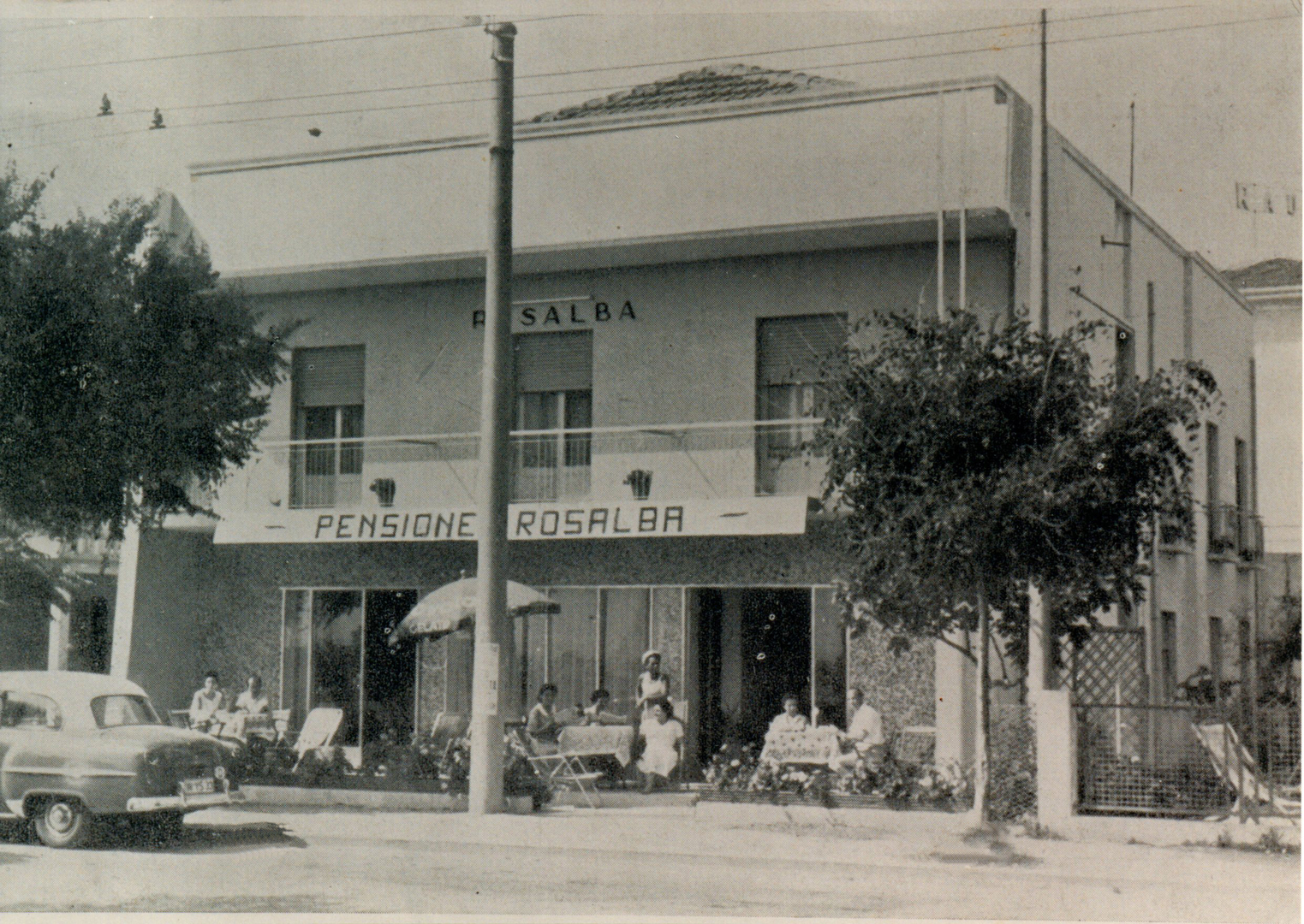 Es war 1956, als Frau Nerina ihre “Übernachtung und Verpflegung” öffnete: Ein einziges Stockwerk mit 6/7 Zimmer. Aber ihre Kochkunst und die Gastfreundschaft der Familie Righetti ermöglichten schon 1958, das Gebäude zu erweitern und es in der „Pension Rosalba“ umzubauen. So blieb es dann für lange Zeit, als es in Riccione noch wenige kleine Pensionen mit familiärer Leitung gab, wo man als Freund und nicht als Kunde behandelt wurde, wo man alle zusammen aß; am selben Tisch saßen Personen verschiedener Dörfer, die Lust darauf hatten, Freundschaft zu schließen und das Meer und die Sonne zu genießen. Im Laufe der Jahren wurde die Pension zum Hotel mit dem typischen Äußere im mauresken Stil, weiß mit blauen Balkonen, aber abgesehen davon, hat sich nichts verändert: die Familie ist immer die gleiche. Nach einer kleinen Pause von einigen Jahren (und einige Generationen später) möchten wir immer noch, Sie ein Jahr nach dem anderen mit einer Umarmung aufnehmen und dass Sie sich als Freund fühlen.