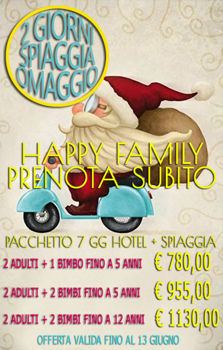 - da tutte le offerte è esclusa la tassa di soggiorno - € 1,20 al giorno per i primi 7 giorni di soggiorno