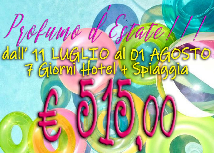 offerta valida dall' 11 Luglio al 01 Agosto per un soggiorno di 7 giorni
