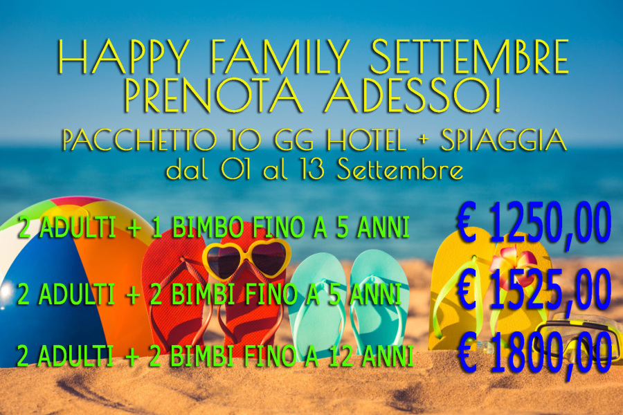 2 ADULTI + 1 BIMBO FINO A 5 ANNI = € 1250,00